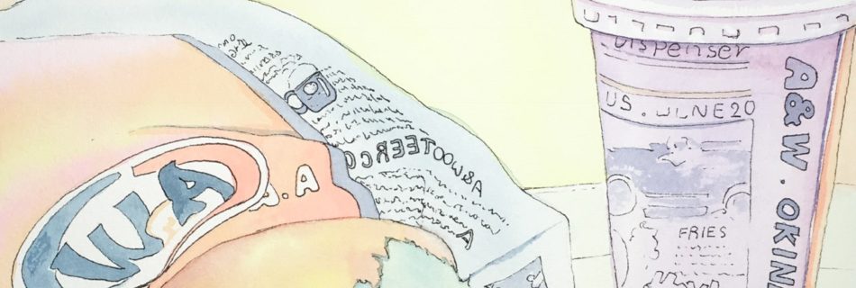沖縄で食べたA &Wのハンバーガー。 カップと包装紙がいい感じ。
