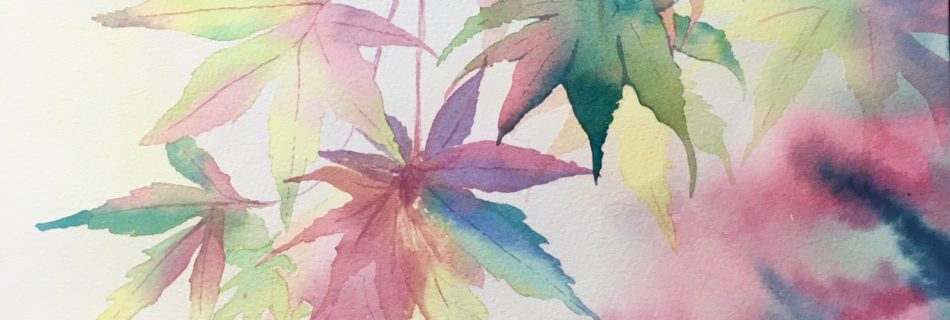 風景画に追加 いくつかの色が混ざった葉がいいですね。 その場で描きたくなります。